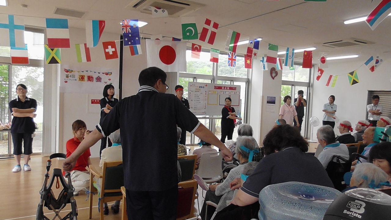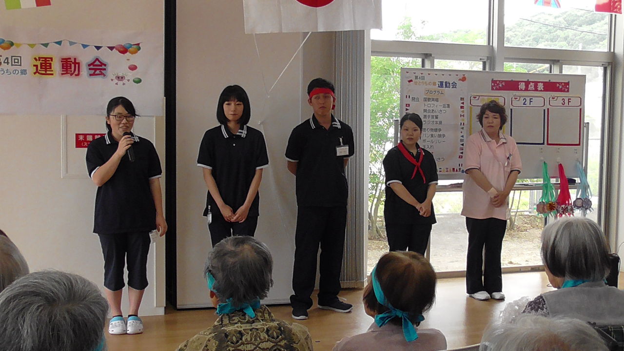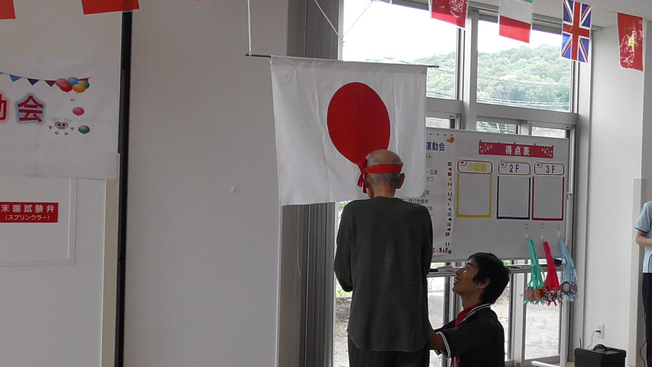 2019年06月22日 活動報告 第4回 せとうちの郷運動会 せとうちの郷にて運動会を行いました まず国旗掲揚・国歌斉唱、そして、安全に楽しく行えるよう、選手宣誓を行いました競技の前に新人職員紹介と新人職員によるラジオ体操競技は『借り物競争』『パン食い競争』『ボールリレー』『玉入れ』 「ドクター」や「金髪の少女」に変装していただきました 2階・3階・小規模 の3つのチームに分かれて競い合いました 白熱した『ボールリレー』みなさん真剣にボールをパスしていました今回の優勝は3Fチームのみなさんでしたどのチームも職員とともに団結し頑張ってくれましたみなさんお疲れ様でした来年も優勝目指して頑張るぞ Shere