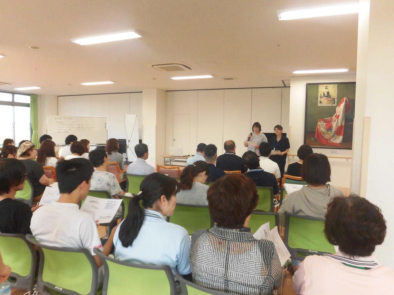 2019年06月25日 活動報告 令和元年 第2回 全体研修(せとうち) せとうちにて令和元年度第2回全体研修を行いました 「こころに寄り添う認知症ケア」では、症状もさまざまである認知症にもし自分がなってしまったらどうしてほしいかを、本人目線で考えてみました 新人スタッフとのかかわり方については、自分の考えを伝えることと伝わり方は違うこと、多くの事例があがっていました おむつフィッターのスタッフが実際おむつを着用しての、~おむつさまざま物語~おむつの種類、おむつの当て方など、たくさんの事例が紹介されました。研修に参加したスタッフは、50分ほど着用して感触を確かめました Shere