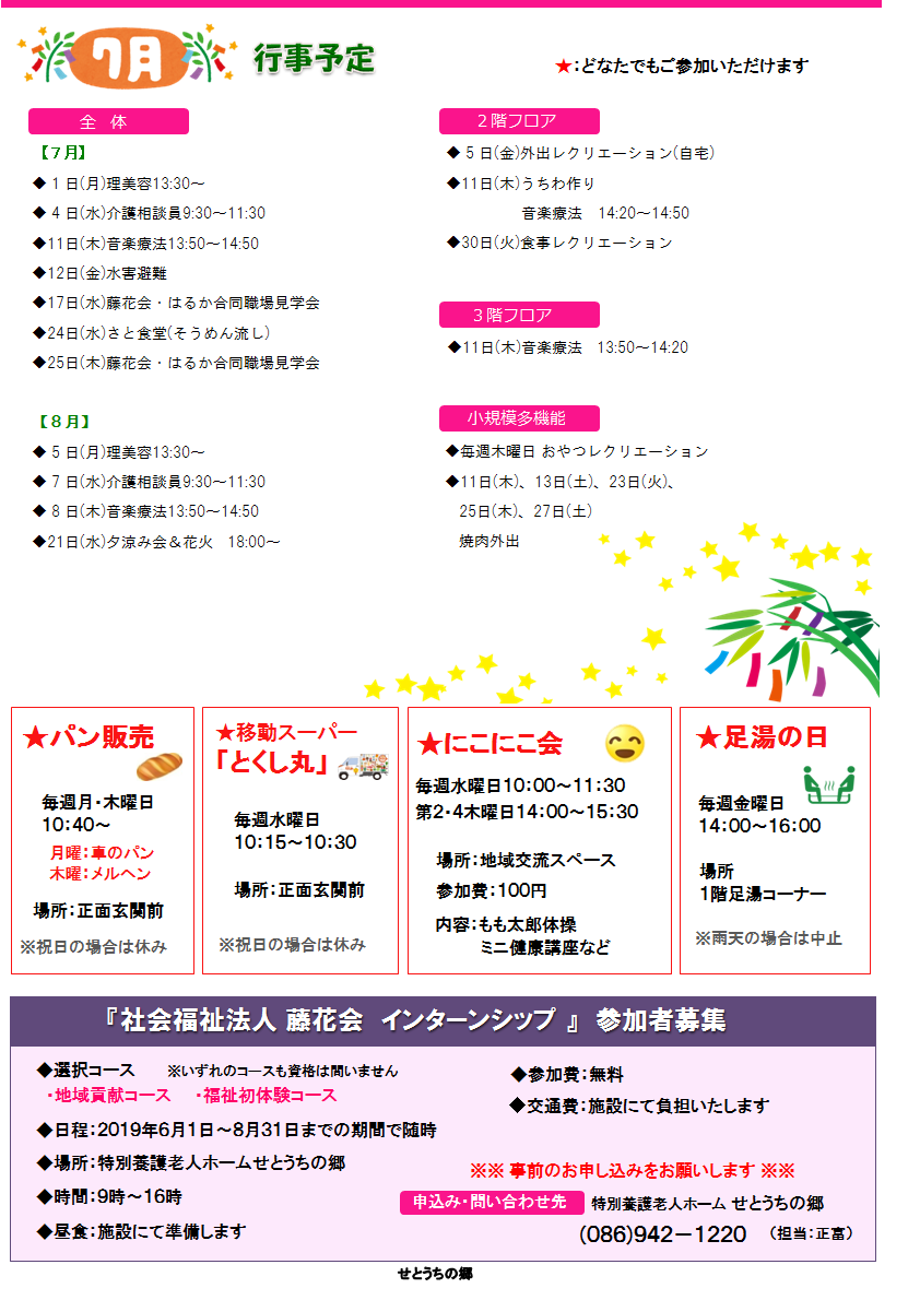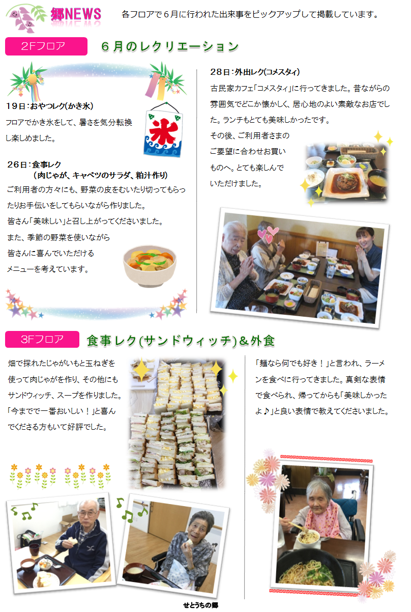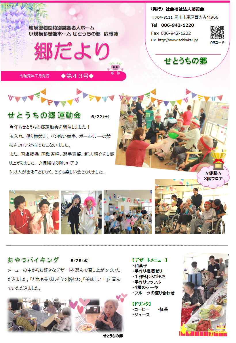 2019年07月08日 活動報告 せとうちの郷広報誌『郷だより』7月号発行! せとうちの郷広報誌『郷だより』7月号を発行しました 6月の開催された出来事、7月の行事予定等掲載しております ご覧いただけると嬉しいです Shere