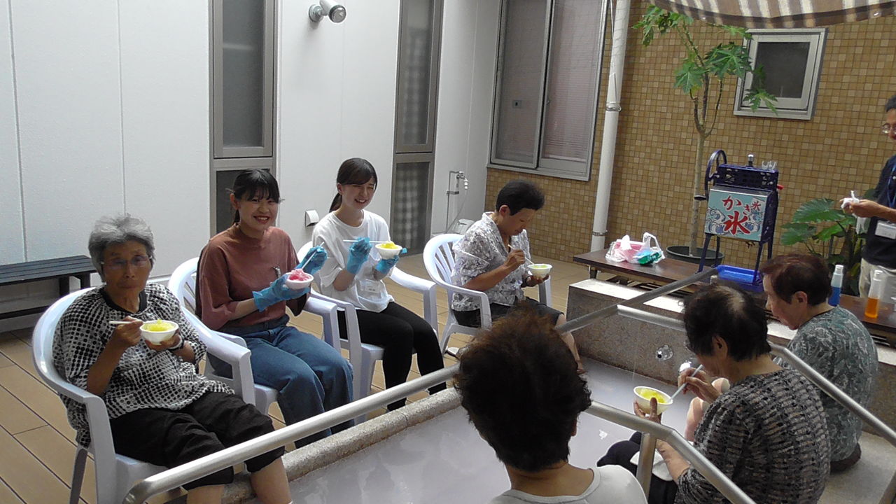 2019年08月19日 採用情報活動報告 インターンシップ&足湯でかき氷(せとうちの郷) 8.16(金) せとうちの郷に、2名の方がインターンシップ(職業体験)で施設に来てくださいました 施設についての話を聞いていただいたり、入居者さまと交流していただきました また同日、“足湯でかき氷”のイベントを開催地域の方々が参加してくださいました インターンシップの2人にも、かき氷作りを手伝っていただきました 参加してくだった皆さま、ありがとうございました 藤花会では下記のとおりイベントを開催予定ボランティアを募集していますご興味のある方はぜひご連絡くださいよろしくお願いします Shere