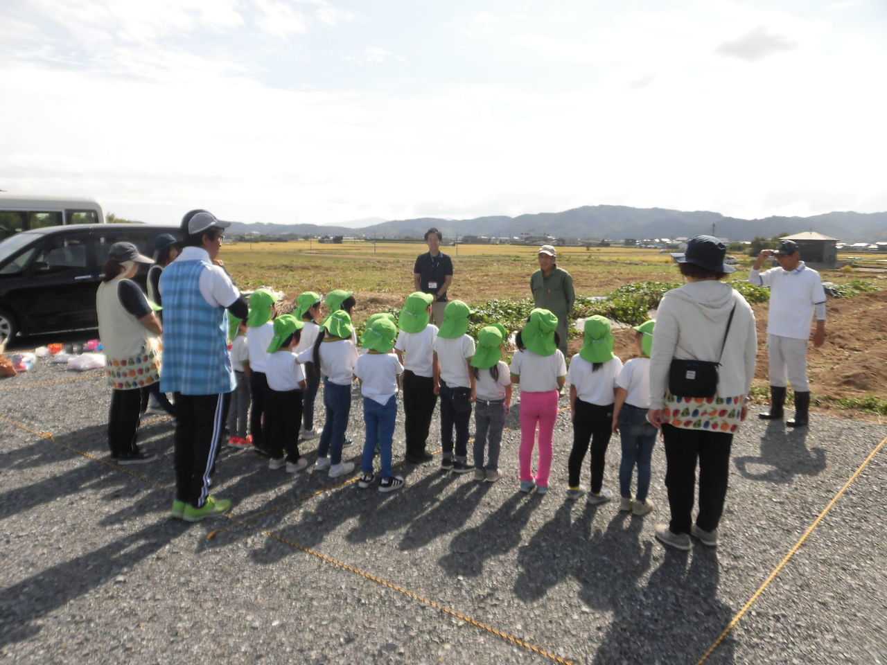 お芋のお話を真剣に聞く園児達