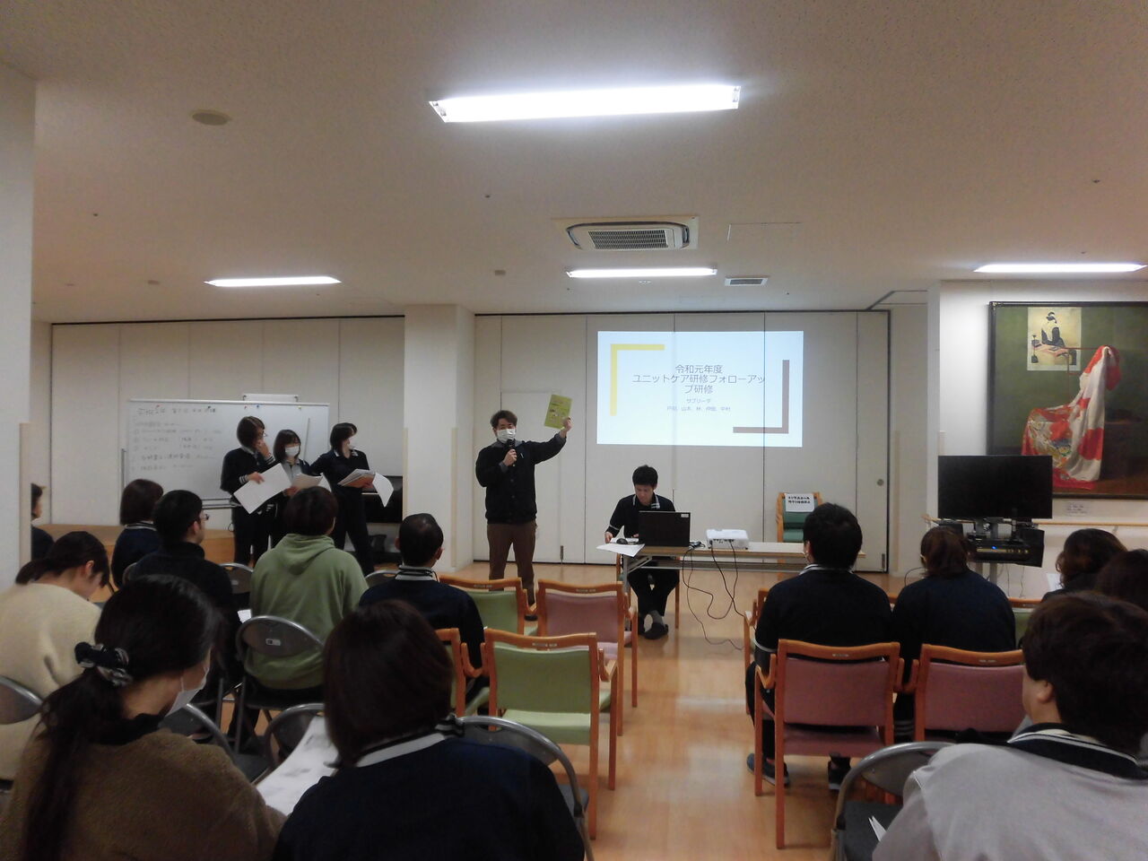 2020年01月30日 活動報告 全体会議(せとうち) 1/28『令和元年度 第5回 全体会議』 3つの研修報告がありました。①ユニットケア研修②クレーム対応③ACP どの研修においても相手に深く関心を持ち、どう気付くかということ、そしてコミュニケーションを活発にしていくことが大切であることだと思いました。 1月入社の職員の紹介がありました。よろしくお願いします。 施設長からは、働き方改革に伴い、よい習慣をつけ自分で自分の人生を決めていきましょうというお話があり、閉会しました。 Shere