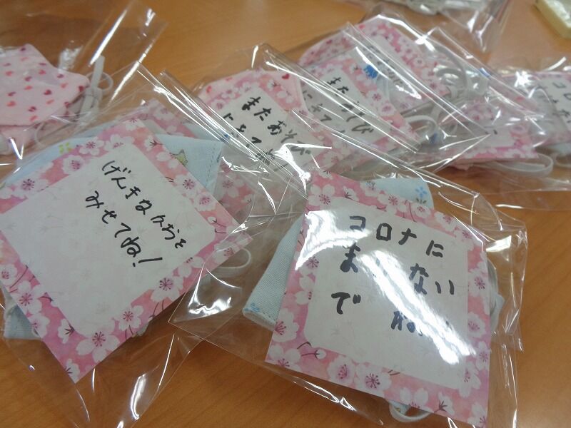 そこで、職員とご利用者様が協力して手作りマスクを作り、
