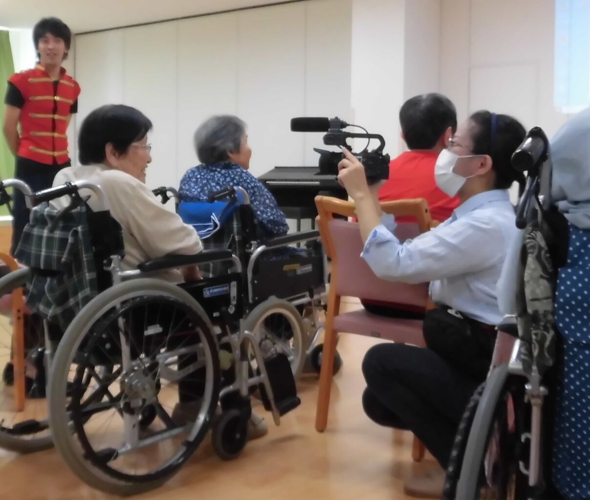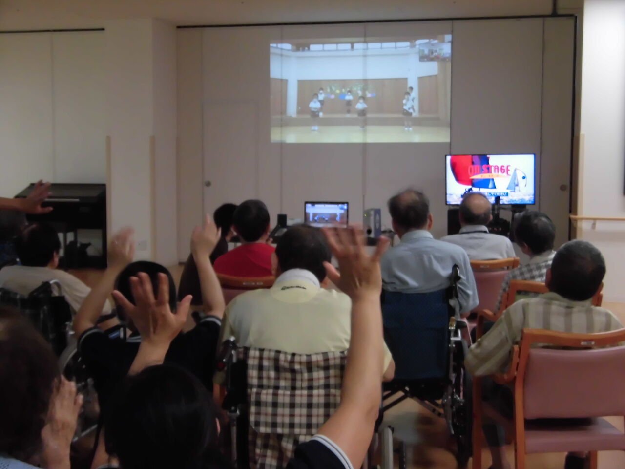 園児たちのかわいい踊りをプロジェクターで映し出している様子や、
