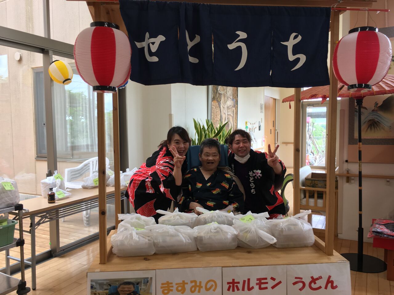 2020年07月20日 活動報告 名物ホルモンうどんをせとうちで♪(せとうち) ご入居者様が、かつて腕をふるってこられたご自慢の味「ホルモンうどん」を再現して、16時半より販売開始です! オープンの館内放送もばっちり 注文が殺到!秘伝のタレで味付けしてお届けです 買っていただくお客様に、この笑顔でお届け 好評につき、即完売!!第2弾が楽しみです 新館2階のレクリエーションの続きは、次回のブログで・・・ Shere