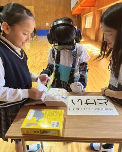 地域には高齢の方が多く暮らしており、「お年寄りのために自分たちができることを考える」授業の一環として、子どもたちは高齢者の身体的な変化や日常の困りごとを、装具を使って体感しました。