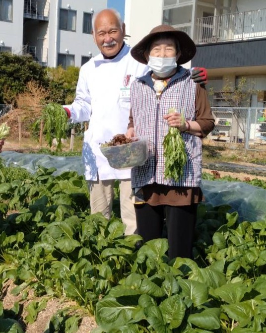 並んで畑に立つ姿に、職員たちも思わず笑顔になりました。