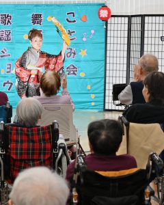 せとうちの郷に、ことみ会の皆さんが訪れ、日本舞踊を披露してくださいました。
