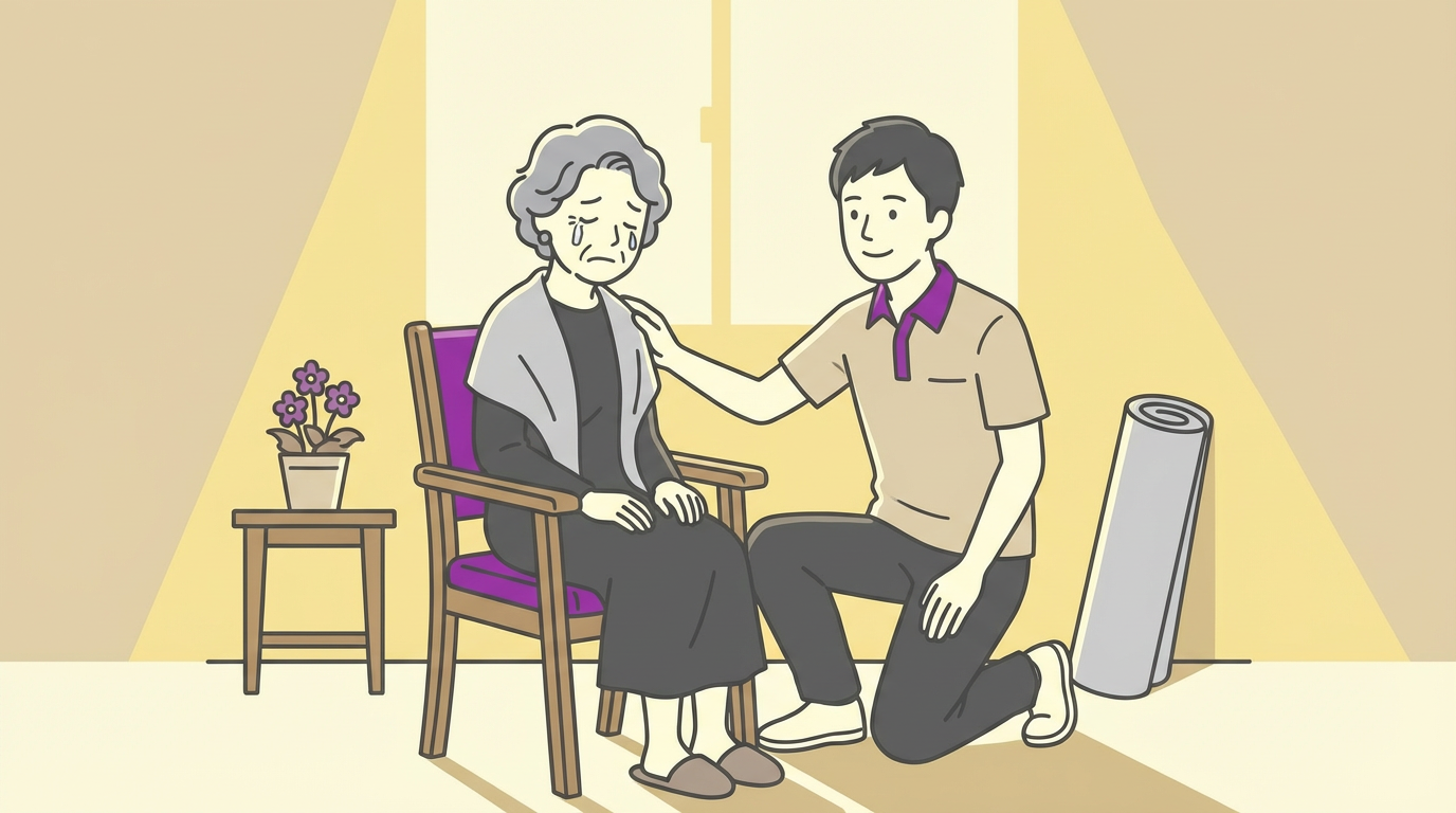 ただ、ときどき、個別リハビリ中に入居者様が涙を流す場面も見ることがあります。