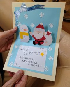 2025年12月24日 活動報告せとうち クリスマスカードが届きました 邑久高校の生徒さんからせとうちの入居者様へ、クリスマスカードが届きました。 毎年、職員が福祉の授業担当させてもらったり、 レクリエーションのために施設に来てくれたりと、 交流がある邑久高校です。 「まぁ、うれしい!」 と喜ぶご利用者様。 また来年も交流しましょうね。 ★★★★★ 岡山県岡山市、瀬戸内市、赤磐市、備前市で介護サービスの利用を検討中の方、まずは藤花会にご相談ください。 お困りごとやご要望をお伺いし、適切な介護サービスをご提案します。 まずはお電話ください! 0869-22-2006 Shere