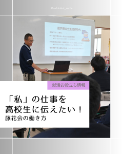機能訓練指導員が「なぜ理学療法士を目指したのか」「受験勉強の挑み方」「特養での働き方」などを高校生に語りかけました。