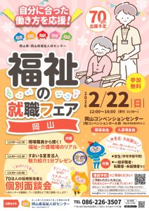 2月22日(日)、岡山コンベンションセンターで開催される「令和8年度 岡山県福祉の就職フェア」に藤花会が参加します!