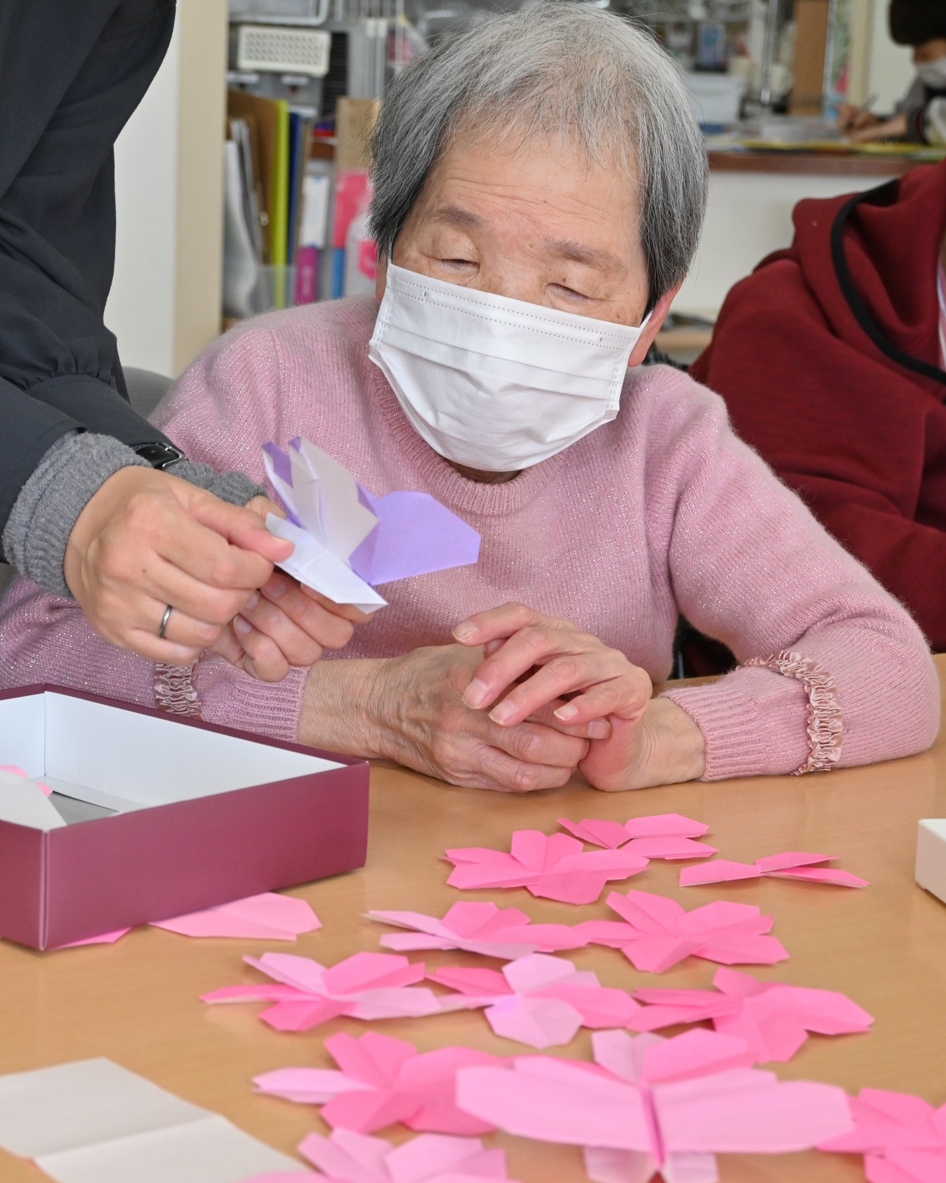 折り紙の先生をお招きしてレクリエーションを行う毎月第3木曜日。
